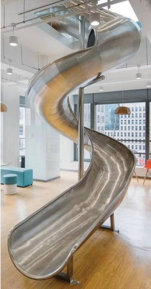 不仅如此,为了让员工高(ren)效(zhen)投(zhuan)入(qian),工作在钉钉,生活在钉钉,这座大楼还有着运动达人乐此不疲的健身房、攀岩墙、篮球场等,社交怪咖热衷的桌球区,更有着在舌尖冒险的食堂,重新定义办公交通的滑梯。如此酷的工作环境,员工想不爱上办公室都难。