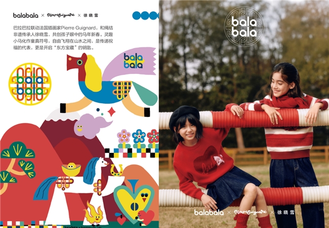 图:巴拉巴拉地铁广告 从符号输出到全球对话 本次营销的前瞻性,不仅体现在对国内亲子关系的深刻洞察,更在于其尝试以全球视野重新思考中国新年的文化表达。 而“东方宝藏计划”马年新春系列产品本身,便是跨文化对话的生动结晶。巴拉巴拉特邀法国插画艺术家 Pierre Guignard,以其充满童趣与想象力的笔触,描绘出一匹会飞的小马。在 Pierre 的画面中,小马挣脱传统形态,圆融可爱,舒展于山水云霞之间,周身萦绕如糖果般的元宝与祥云——这一切,皆源自孩童眼中对新年好运的直觉与幻想。 与此同时,品牌携手非遗绳结技艺传承人徐晓雪,将画中灵动的线条与意象,转化为可触可感的立体语言。绳结不再只是古老的手艺,而成为翻译童真想象的媒介,让东方非遗与西方艺术在经纬交织中达成默契。